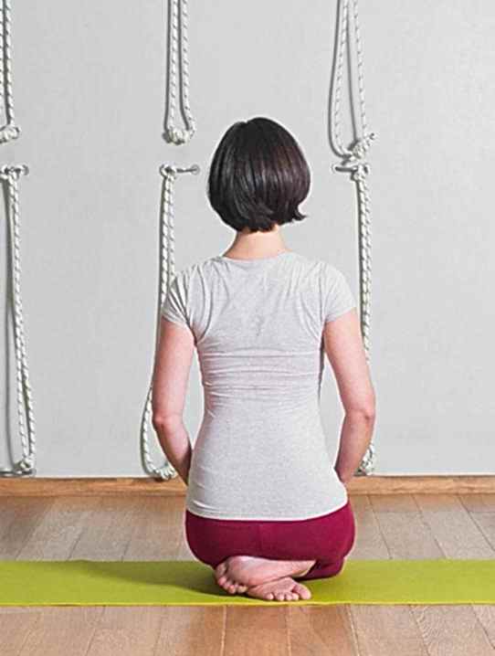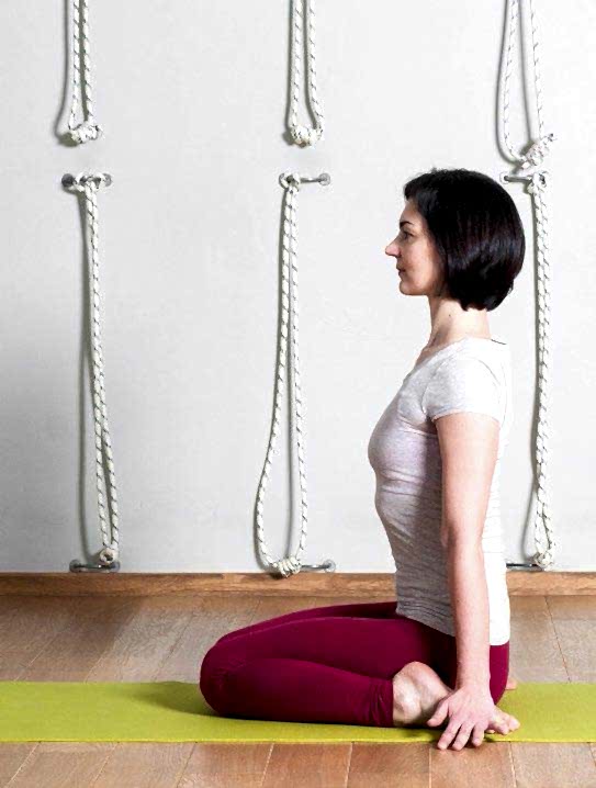 В этой позе, опуская таз на пятки, под действием веса тела удлиняются плюсны и передние лодыжки, в них создаётся пространство. Эта поза полезна для тех, у кого сводит икроножные мышцы, так как кости голеней удлиняются и вытягиваются. Нужно плотно связать лодыжки ремнём чуть выше голеностопных суставов, чтобы сохранить параллельность стоп. Если поначалу это болезненно, затягивайте ремень постепенно. Следите за ровным положением тела. Не наклоняйтесь вперёд или назад.